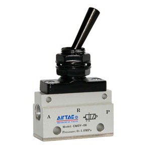 The Airtac 4H hand lever air valve series, including 4H21008T, is a functional replacement for the SMC VZM400 series.